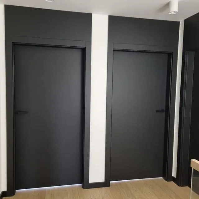 • раб (завршување по технологија STANDARD или крило без фалц) покриен со лента во бојата на крилото на вратата или опционално во црна боја, мазен (во декор ДАБ НАТУР НАПРЕЧЕН PREMIUM црн раб со напречна структура)
