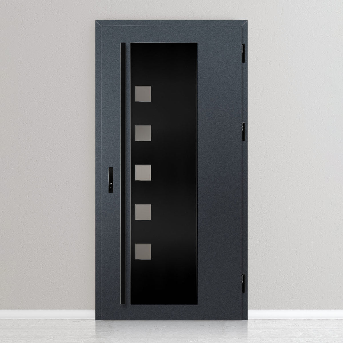 Вратата е изработена од челична поцинкована ламарина со дебелина 0,6мм и PVC декор. Крилото е со полнеж од полиуретанска пена со густина 750г/м3, а рамката е од лепена борова дрвесина. PVC декорот се одликува со висока отпорност на променливи атмосферски услови, UV-зрачење и механички оштетувања. Текстурата, адаптирана кон декоративниот мотив, создава производ со висока естетска вредност, дополнително на неговите квалитети за безбедност и отпорност на провала.