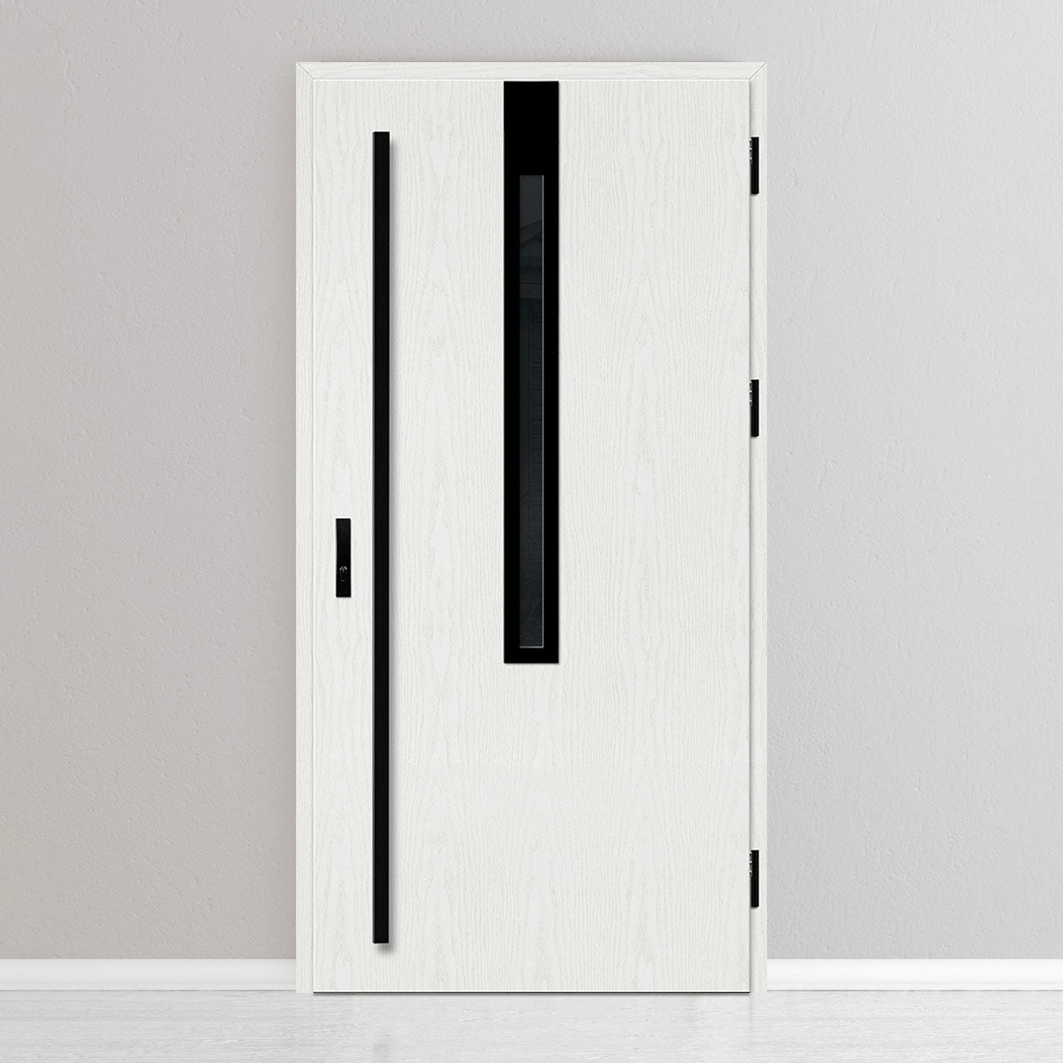 Вратата е изработена од челична поцинкована ламарина со дебелина 0,6мм и PVC декор. Крилото е со полнеж од полиуретанска пена со густина 750г/м3, а рамката е од лепена боровина. PVC декорот се одликува со висока отпорност на променливи атмосферски услови, UV-зрачење и механички оштетувања. Текстурата, прилагодена на декоративниот мотив, создава производ со висока естетска вредност, дополнително на неговите квалитети за безбедност и отпорност на провала.