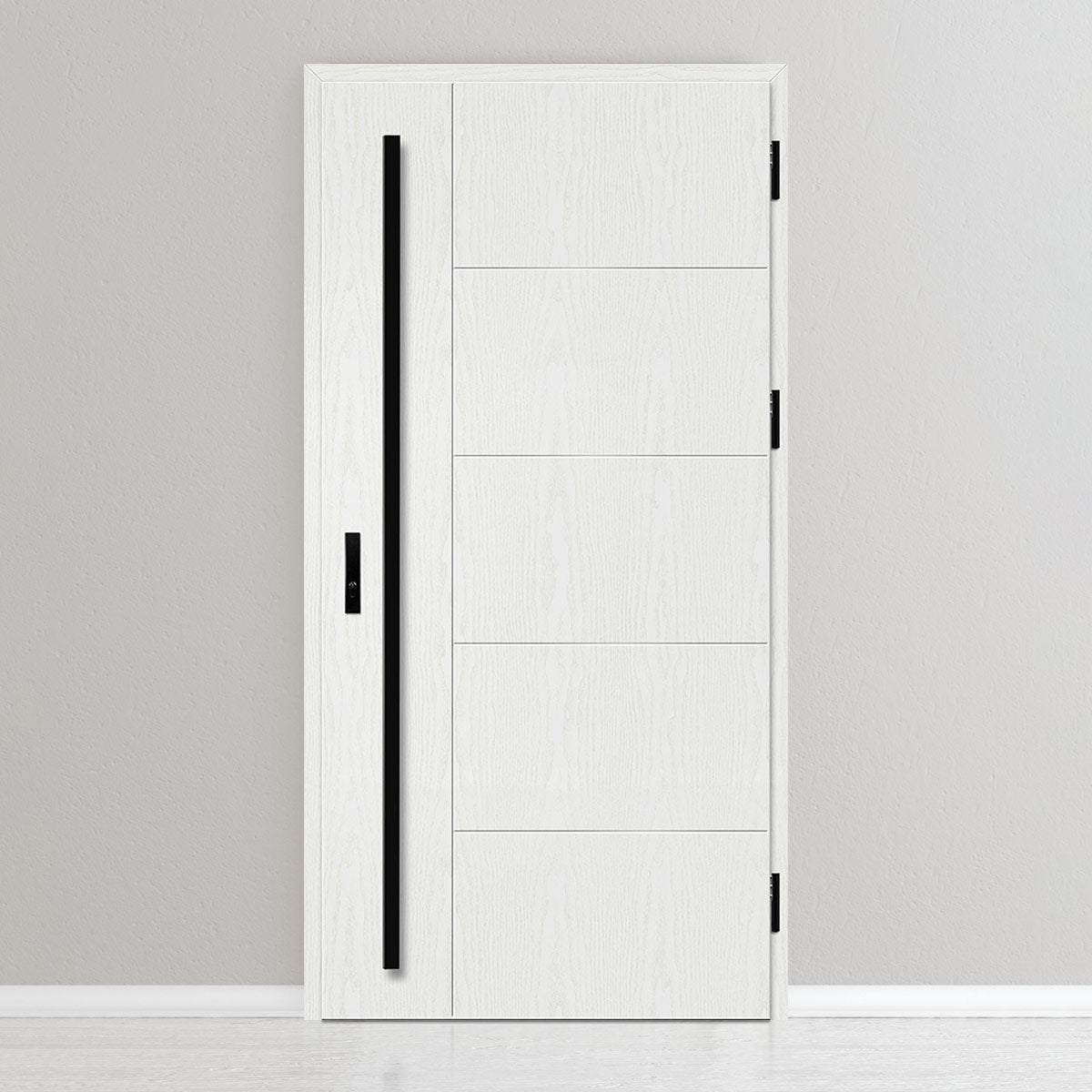 Вратата е изработена од челична поцинкована ламарина со дебелина 0,6мм и PVC декор. Крилото е со полнеж од полиуретанска пена со густина 750г/м3, а рамката е од лепена боровина. PVC декорот се одликува со висока отпорност на променливи атмосферски услови, УВ-зрачење и механички оштетувања. Текстурата, прилагодена на декоративниот мотив, создава производ со висока естетска вредност, покрај неговите својства за безбедност и отпорност на провала.