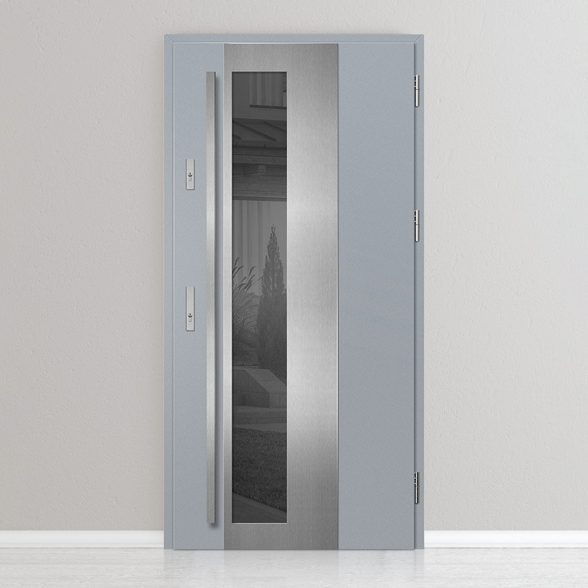 Вратата е изработена од челична поцинкована ламарина со дебелина 0,6мм и PVC декор. Крилото е со полнеж од полиуретанска пена со густина 750г/м3, а рамката е од лепена боровина. PVC декорот се одликува со висока отпорност на променливи атмосферски услови, UV-зрачење и механички оштетувања. Текстурата, прилагодена на декоративниот мотив, создава производ со висока естетска вредност, дополнително на неговите својства за безбедност и отпорност на провала.
