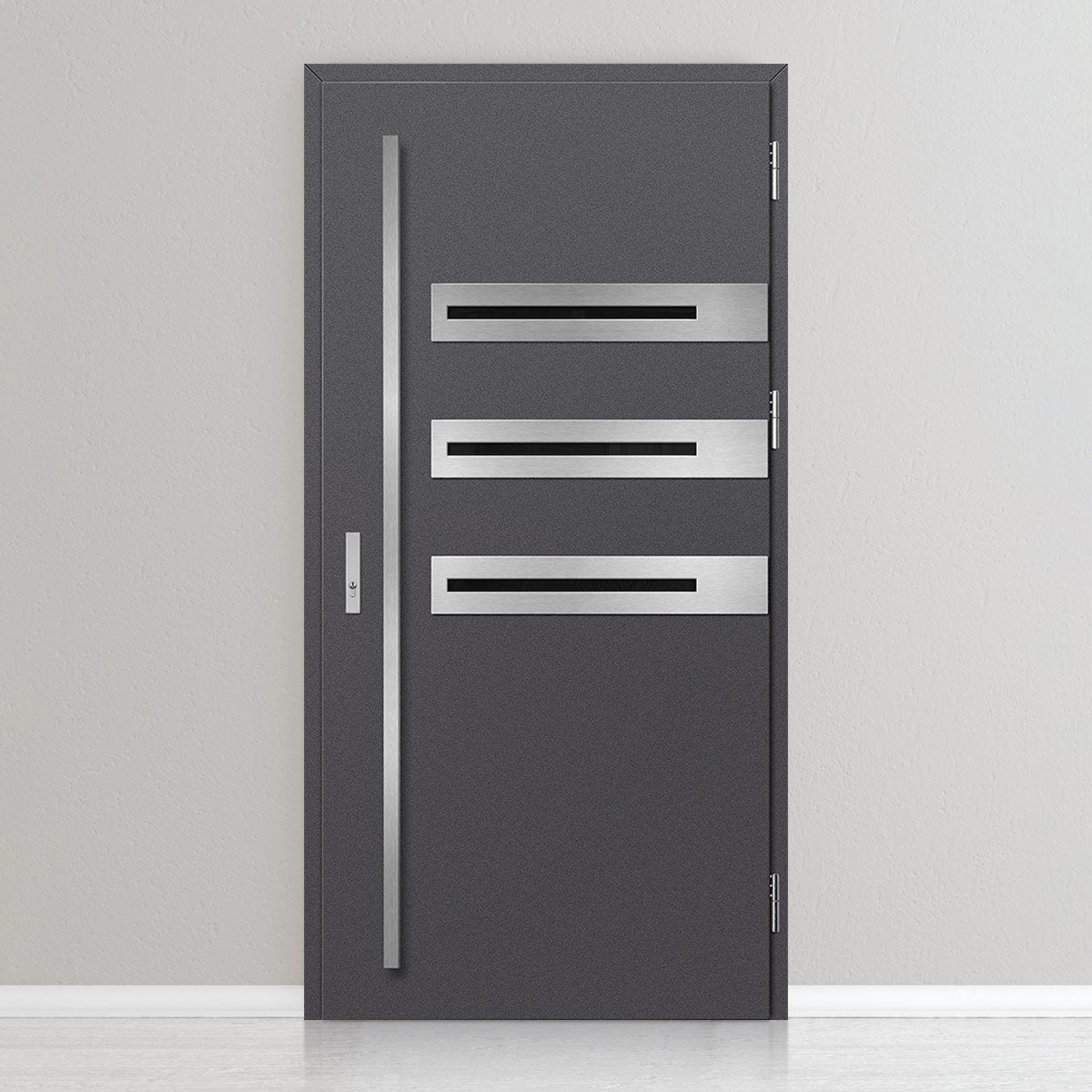 Вратата е изработена од челична поцинкована ламарина со дебелина 0,6мм и PVC декор. Крилото е со полнеж од полиуретанска пена со густина 750г/м3, а рамката е од лепена борова дрвесина. PVC декорот се одликува со висока отпорност на променливи атмосферски услови, UV-зрачење и механички оштетувања. Текстурата, адаптирана кон декоративниот мотив, создава производ со висока естетска вредност, во дополнување на неговите квалитети за безбедност и отпорност на провала.