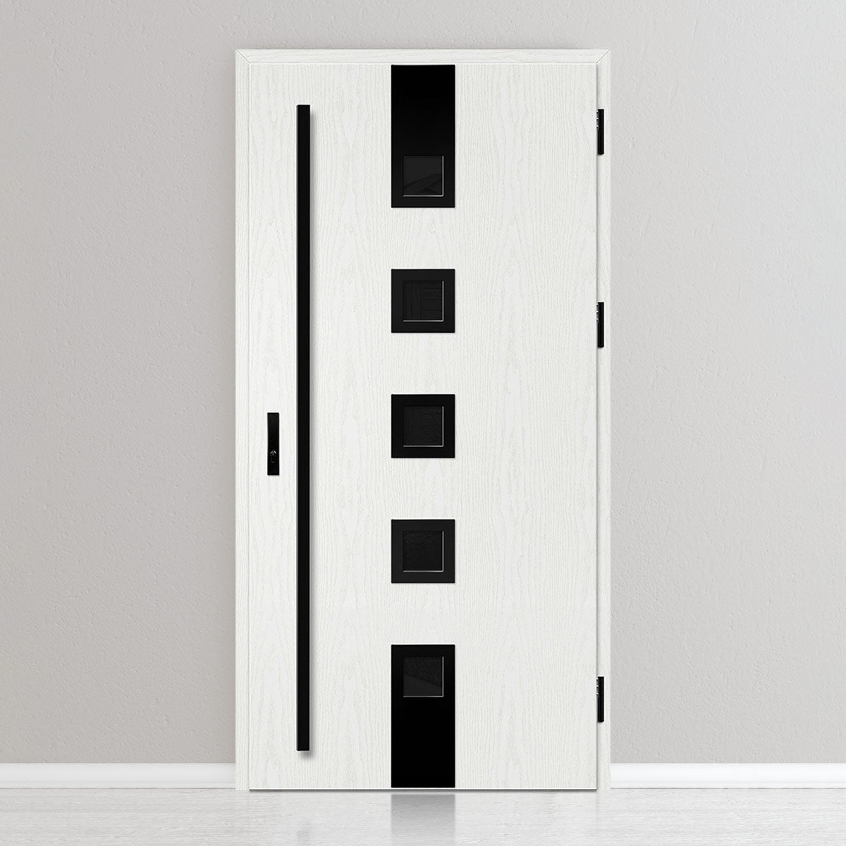 Вратата е изработена од челична поцинкована ламарина со дебелина 0,6мм и PVC декор. Крилото е со полнеж од полиуретанска пена со густина 750г/м3, а рамката е од лепена боровина. PVC декорот се одликува со висока отпорност на променливи атмосферски услови, UV-зрачење и механички оштетувања. Текстурата, адаптирана кон декоративниот мотив, создава производ со висока естетска вредност, дополнително на неговите својства за безбедност и отпорност на провала.