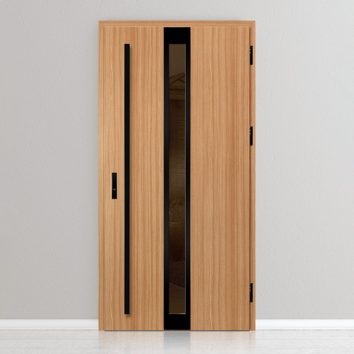 Вратата е изработена од поцинкана челична ламарина со дебелина 0,6мм и PVC декор. Крилото е со полнеж од полиуретанска пена со густина 750г/м3, а рамката е од лепена боровина. PVC декорот се одликува со висока отпорност на променливи атмосферски услови, UV-зрачење и механички оштетувања. Текстурата, прилагодена на декоративниот мотив, создава производ со висока естетска вредност, дополнително на неговите карактеристики за безбедност и отпорност на провала.